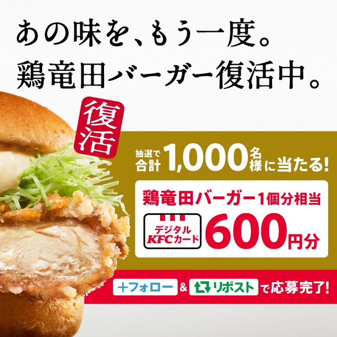 ケンタッキーフライドチキン‐鶏竜田バーガー復活記念キャンペーン第3弾