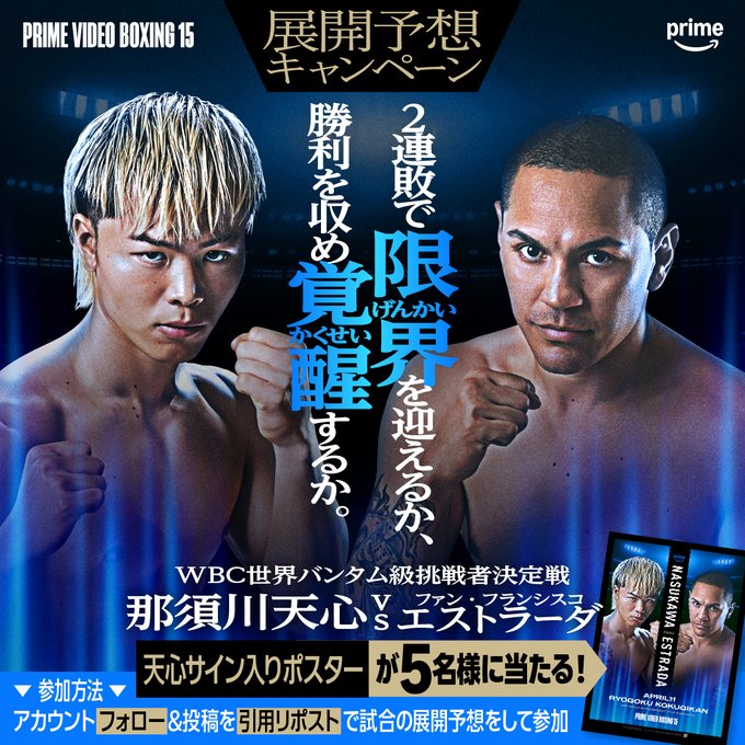 【X懸賞】サイン入りポスターを5名様にプレゼント 2026.04.09『Prime Video Boxing 15』展開予想キャンペーン 賞品:サイン入りポスター(5名様) 締切:2026年4月10日(金)①@pvsportjpをフォロー ②試合の展開予想を書いて引用ポスト※詳細はキャンペーンページにてご確認ください。応募はこちらから