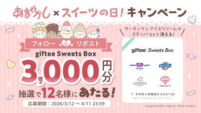賞品:giftee Sweets Box 3,000円分(12名様)