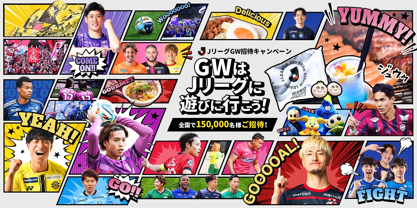 Jリーグご招待を合計150,000名様にプレゼント 2026.04.09JリーグGW招待キャンペーン 全国で150,000名様をご招待! 賞品:Jリーグご招待(合計約150,000名様) 締切:2026年5月27日(水)ご応募には会員登録/ログインが必要です。※詳細はキャンペーンページにてご確認ください。応募はこちらから