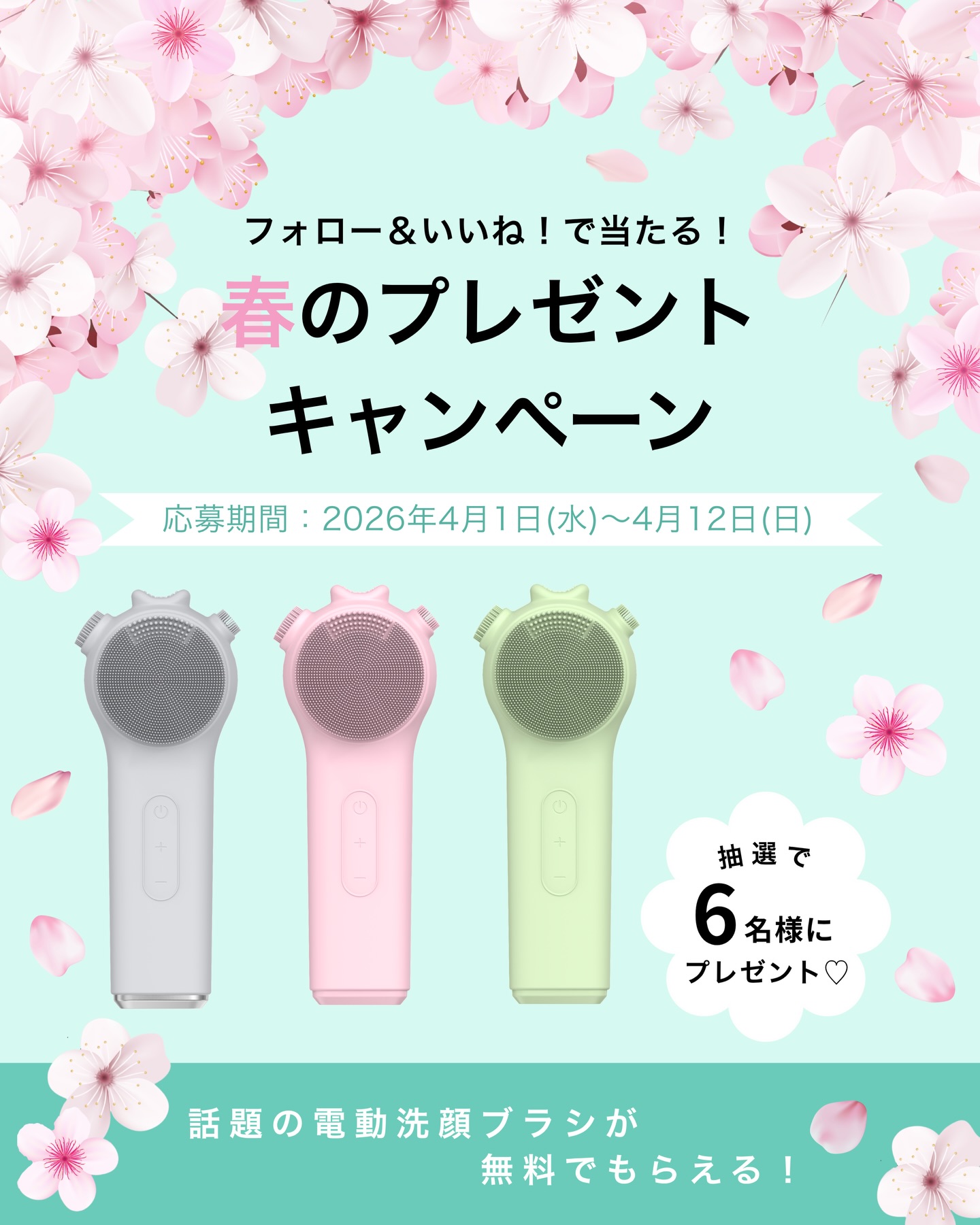 賞品:Libeteeの電動洗顔ブラシ(6名様)