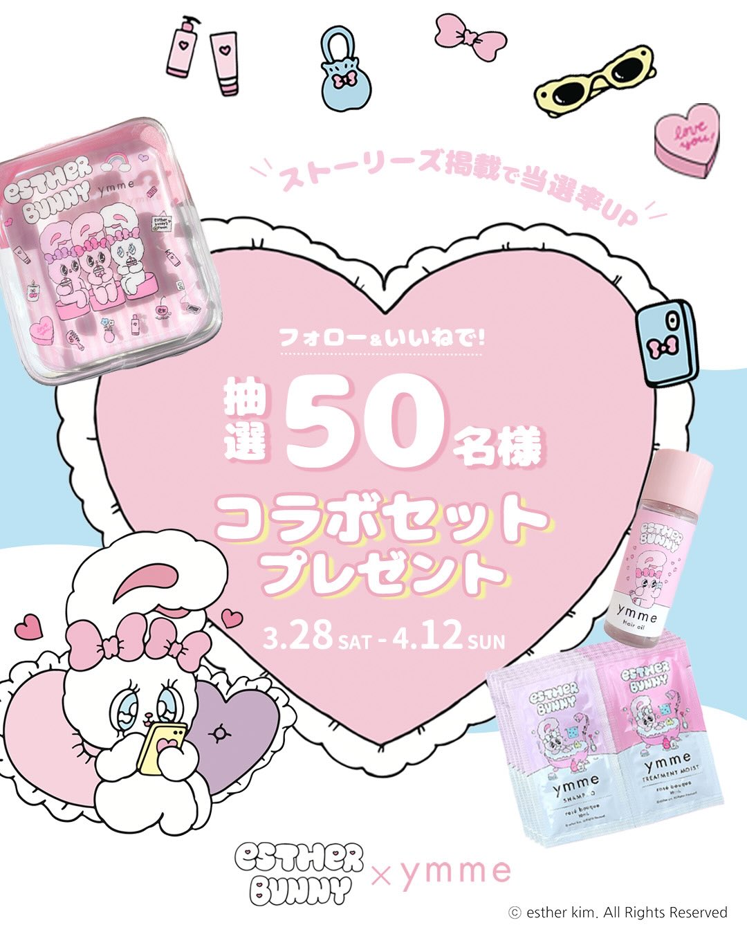 【Instagram懸賞】ymme × Esther Bunny コラボセットを50名様にプレゼント 2026.04.10エスターバニー × ymme プレゼントキャンペーン 賞品:コラボセット(50名様) 締切:2026年4月12日(日)応募方法: 1. 公式Instagramアカウントをフォロー 2. 対象の投稿に「いいね!」※詳細はキャンペーンページにてご確認ください。応募はこちらから