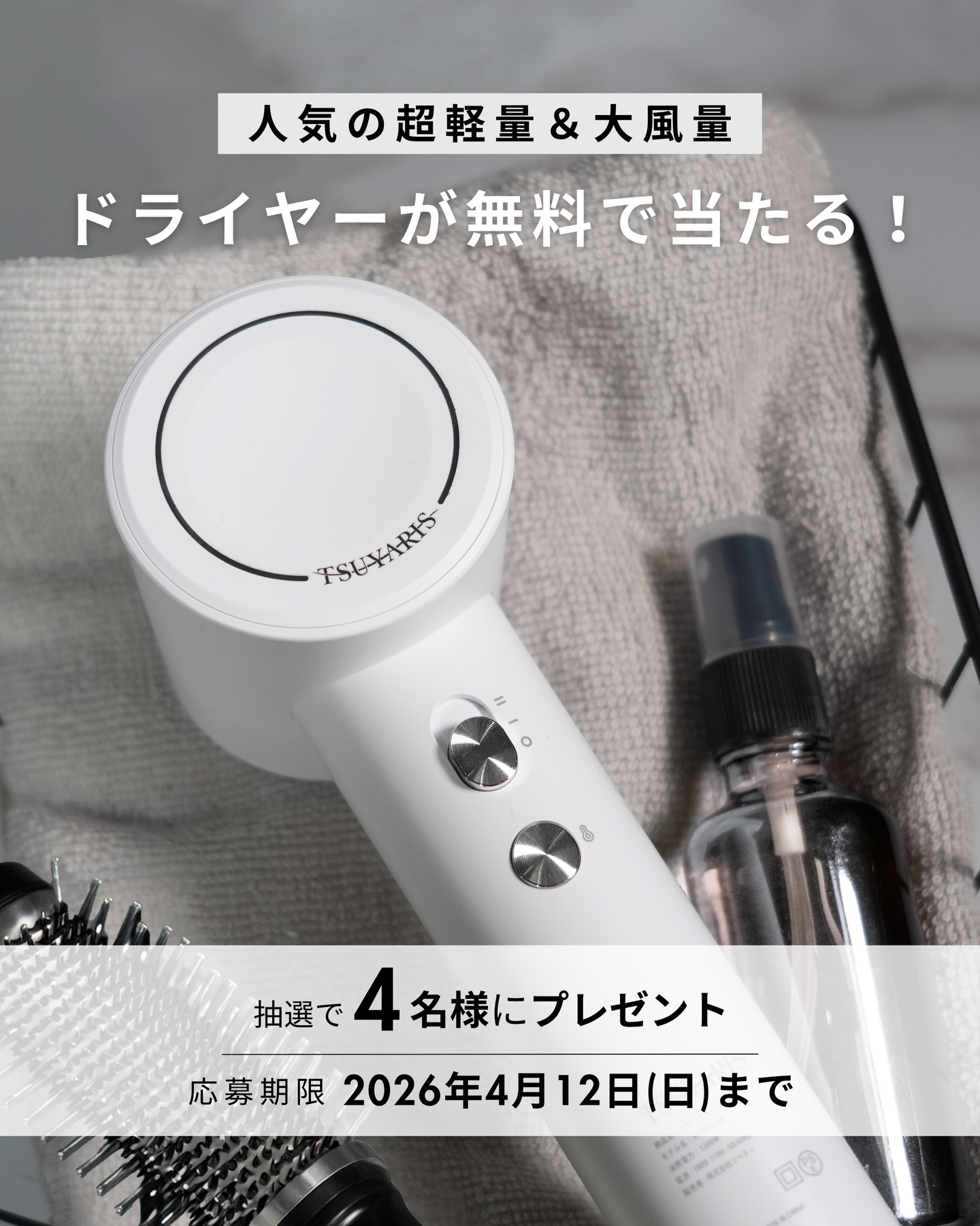 賞品:TSUYARIS ミニイオンドライヤー(4名様)