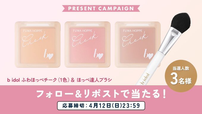 賞品:b idol ふわほっぺチーク(1色)&ほっぺ達人ブラシ(3名様)