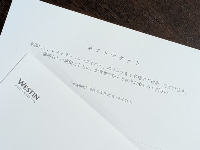賞品:ウェスティンホテル仙台 シンフォニーのランチ ペアギフトチケット(1組様)