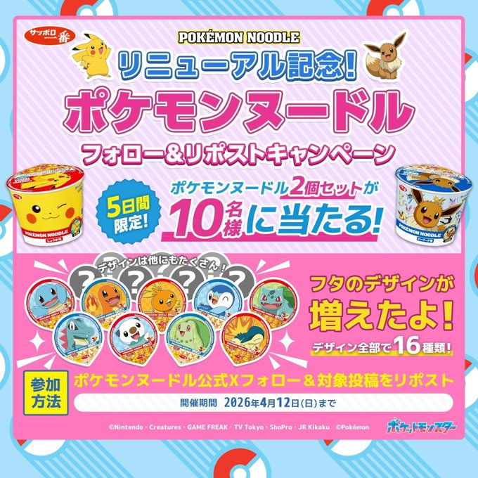 サッポロ一番 ポケモンヌードル‐フォロー&リポストキャンペーン