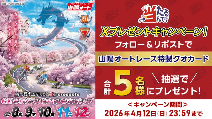 賞品:山陽オートレース特製クオカード(5名様)