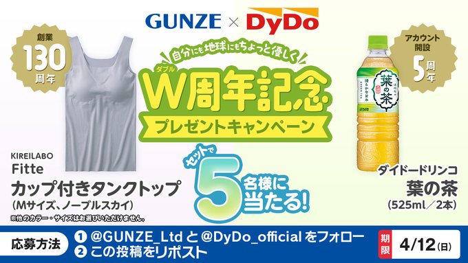 @GUNZE_Ltd @DyDo_official をフォロー&キャンペーン対象ポストをリポストしてご応募ください。