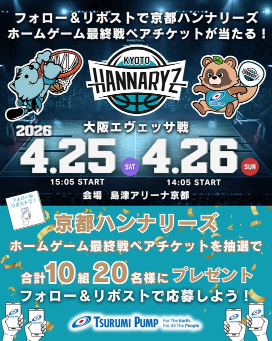 賞品:京都ハンナリーズ ホームゲーム最終戦ペアチケット(10組20名様)
