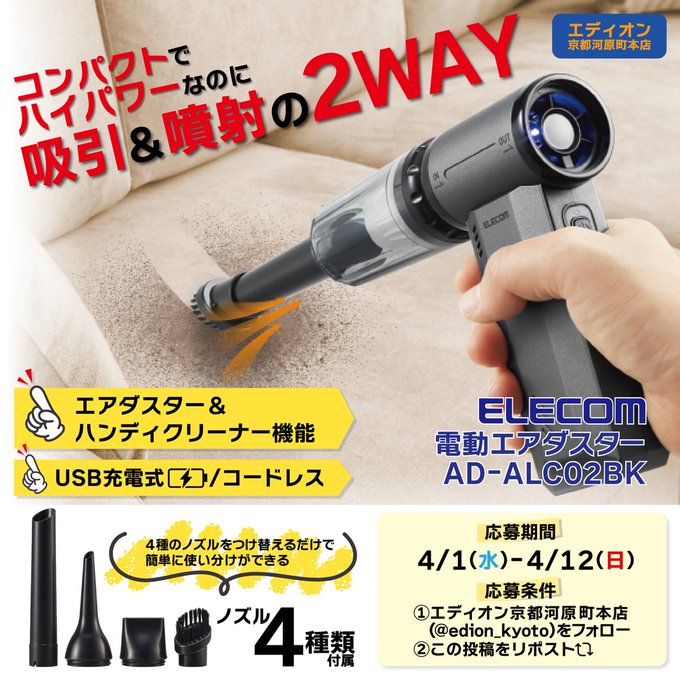 賞品:エレコムの電動エアダスター AD-ALC02BK(1名様)