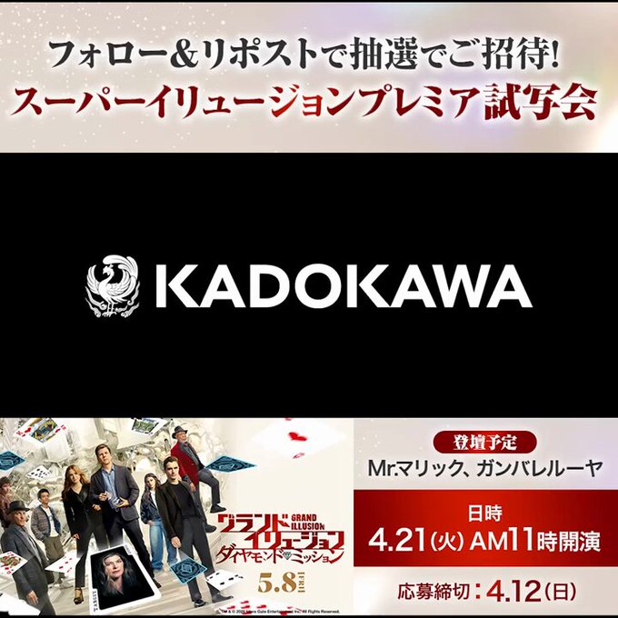 賞品:映画『グランドイリュージョン/ダイヤモンド・ミッション』イリュージョン付き試写会ご招待(5名様)