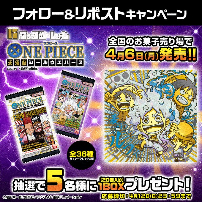 賞品:にふぉるめーしょん ワンピース大海賊シールウエハースLOG.14 1BOX(5名様)