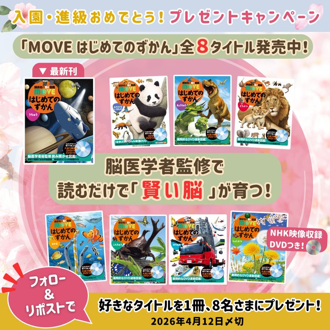 講談社の動く図鑑MOVE‐入園・進級の学びの第一歩に最適!「はじめてのずかん」シリーズが当たるXキャンペーン