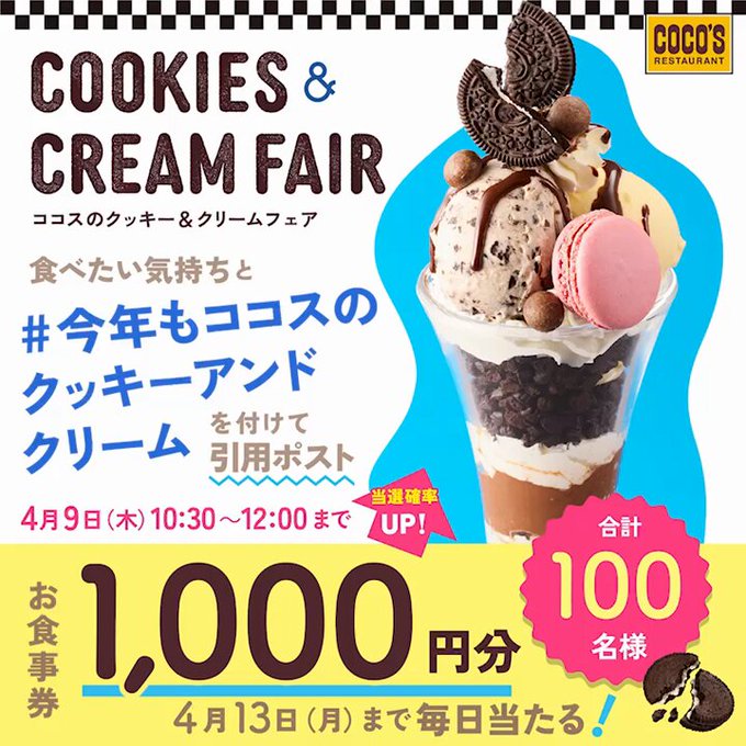 ココス『クッキー&クリームフェア』開催記念フォロー&引用ポストキャンペーン