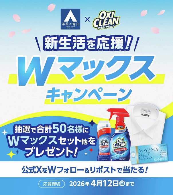 @OXICLEANJPと@AoyamaOfficialをフォロー&キャンペーン対象ポストをリポストしてご応募ください。