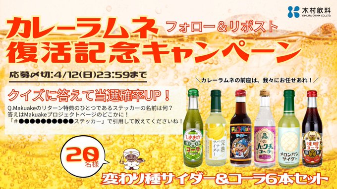賞品:カレーラムネ級の個性派サイダー&コーラ(20名様)