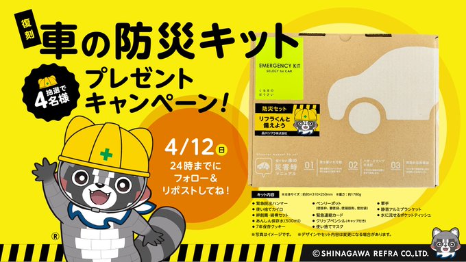 リフラくん | 品川リフラ広報見習い‐復刻 車の防災キット プレゼントキャンペーン