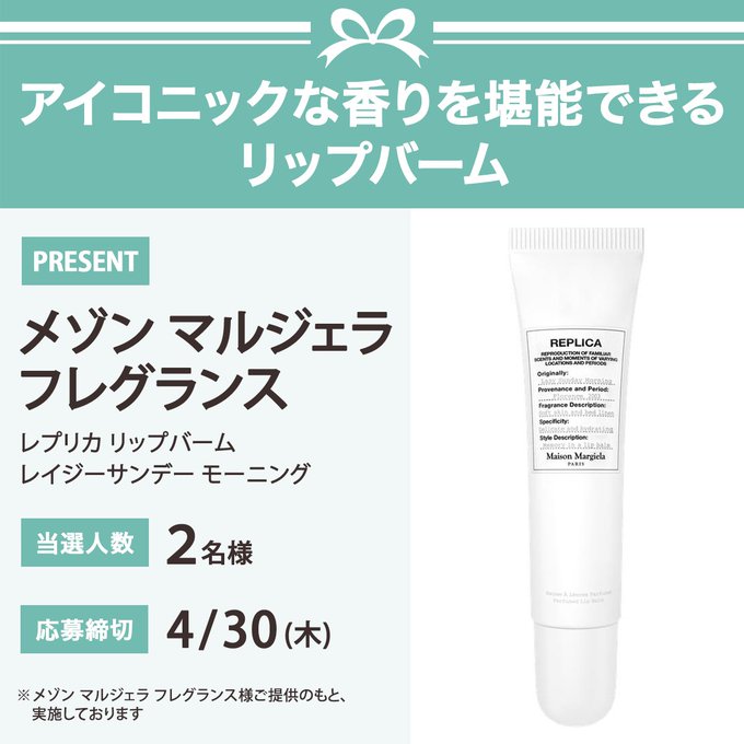 賞品:メゾンマルジェラ フレグランス レプリカ リップバーム レイジーサンデー モーニング(2名様)