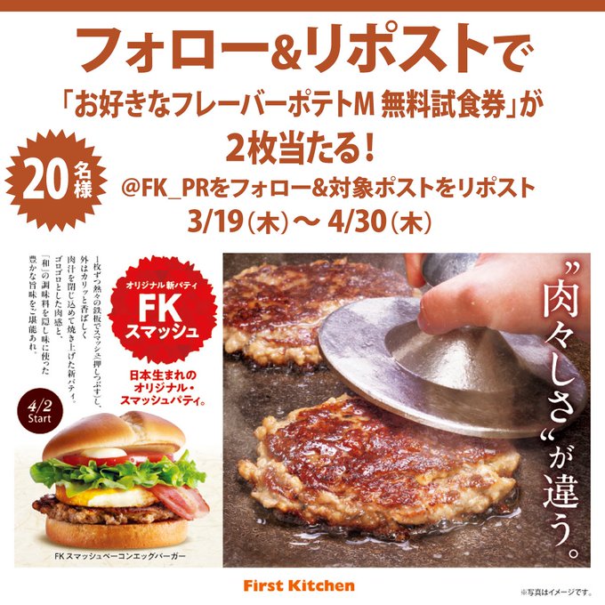 賞品:お好きなフレーバーポテトMサイズ無料券2枚(20名様)