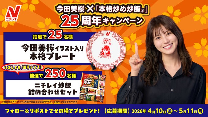 【毎日・X懸賞】今田美桜イラスト入り本格プレート、冷凍炒飯詰め合わせセットを合計270名様にプレゼント