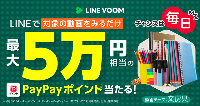 LINE VOOMで文房具動画を見るとPayPayポイント最大5万円相当が当たる!
