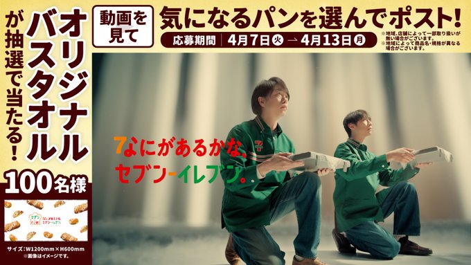 【X懸賞】オリジナルバスタオルを100名様にプレゼント 2026.04.11セブン‐イレブン・ジャパン‐新CM「神様とパン篇」公開記念 賞品:オリジナルバスタオル(100名様) 締切:2026年4月13日(月)①@711SEJ をフォロー ②ボタンから気になるパンをポスト※詳細はキャンペーンページにてご確認ください。応募はこちらから