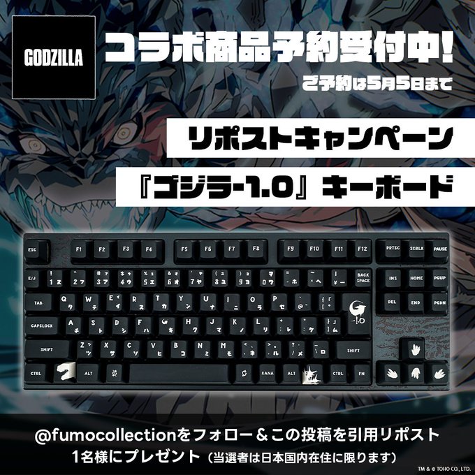 【X懸賞】『ゴジラ-1.0』キーボードを1名様にプレゼント 2026.04.11ふもコレ by ふもっふのおみせ‐プレゼントキャンペーン 賞品:『ゴジラ-1.0』キーボード(1名様) 締切:2026年4月13日(月)参加方法 @fumocollection をフォロー ポストを引用リポスト※詳細はキャンペーンページにてご確認ください。応募はこちらから