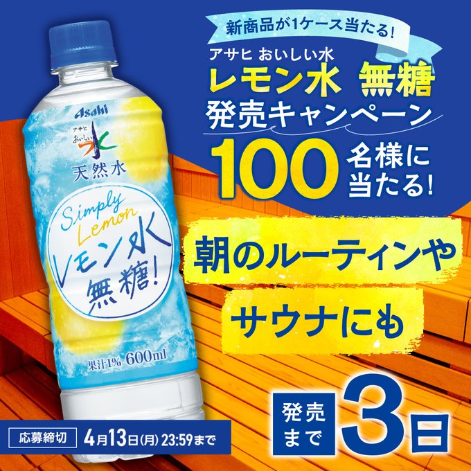 賞品:アサヒ おいしい水 天然水 レモン水 無糖 1ケース(100名様)