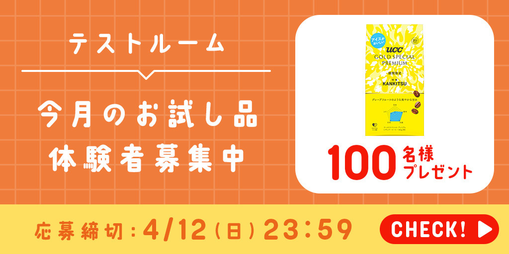 UCC GOLD SPECIAL PREMIUM柑橘 140gを100名様にプレゼント 2026.04.11UCCラボ‐今月のお試し品体験者募集中 賞品:UCC GOLD SPECIAL PREMIUM柑橘 140g(粉)1個(100名様) 締切:2026年4月12日(日)ご応募には会員登録/ログインが必要です。※詳細はキャンペーンページにてご確認ください。応募はこちらから