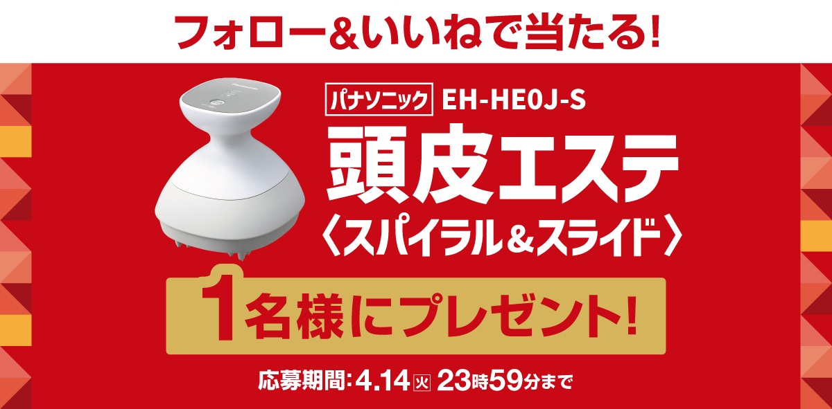 【Instagram懸賞】パナソニック 頭皮エステ スパイラル&スライド EH-HE0J-Sを1名様にプレゼント