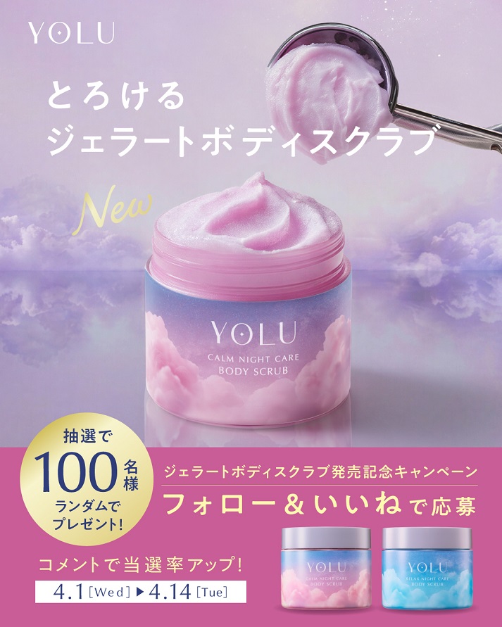 【Instagram懸賞】YOLU カームナイトケアボディスクラブ、リラックスナイトケアボディスクラブを合計100名様にプレゼント