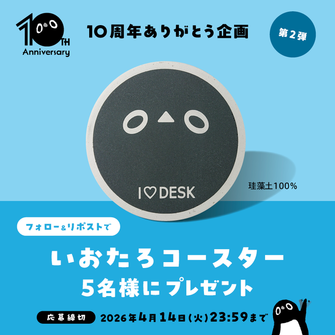 賞品:珪藻土100%のオリジナルコースター(5名様)
