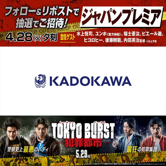 賞品:映画『TOKYO BURST-犯罪都市-』ジャパンプレミアご招待(3組6名様)