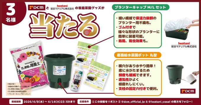@iwatani_yasai @dcm_official_jp をフォロー&キャンペーン対象ポストをリポストしてご応募ください。