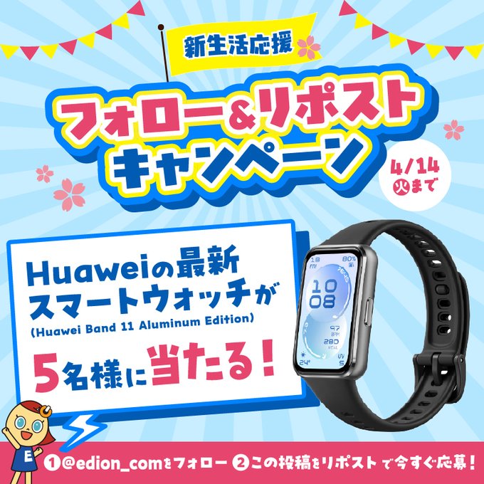 賞品:Huawei Band 11 Aluminum Edition Black CDY-B29-BK(5名様)