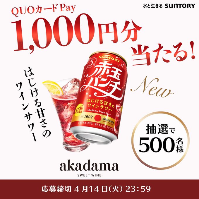 賞品:「赤玉パンチ」オリジナルQUOカードPay1,000円分(500名様)
