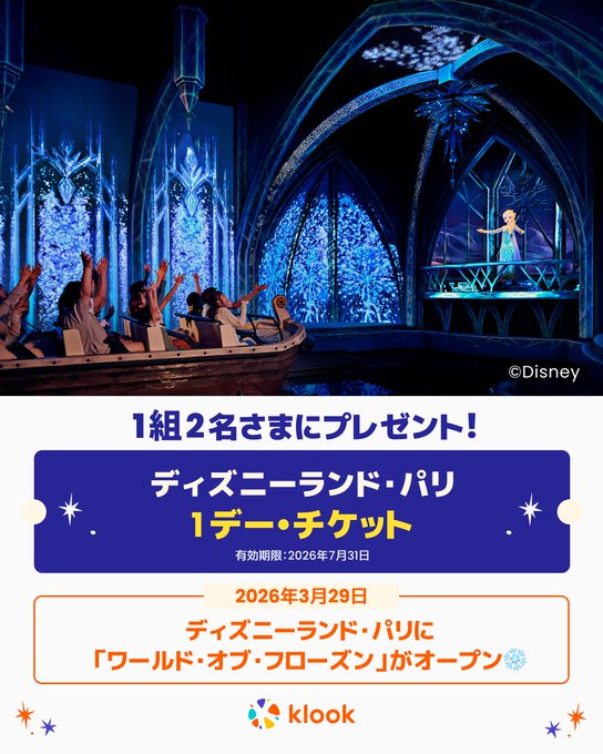 賞品:ディズニーランド・パリの 1デー1パークチケット(1組2名様)
