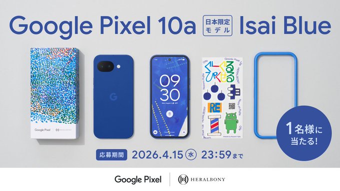 賞品:HERALBONY との日本限定モデル『Google Pixel 10a Isai Blue』(1名様)