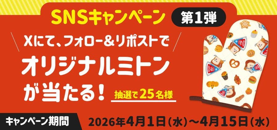 【X懸賞】オリジナルミトンを25名様にプレゼント 2026.04.136Pチーズ‐フォロー&リポストキャンペーン 賞品:オリジナルミトン(25名様) 締切:2026年4月15日(水)公式X(Twitter)アカウントをフォロー&キャンペーン対象ポストをリポストしてご応募ください。※詳細はキャンペーンページにてご確認ください。応募はこちらから