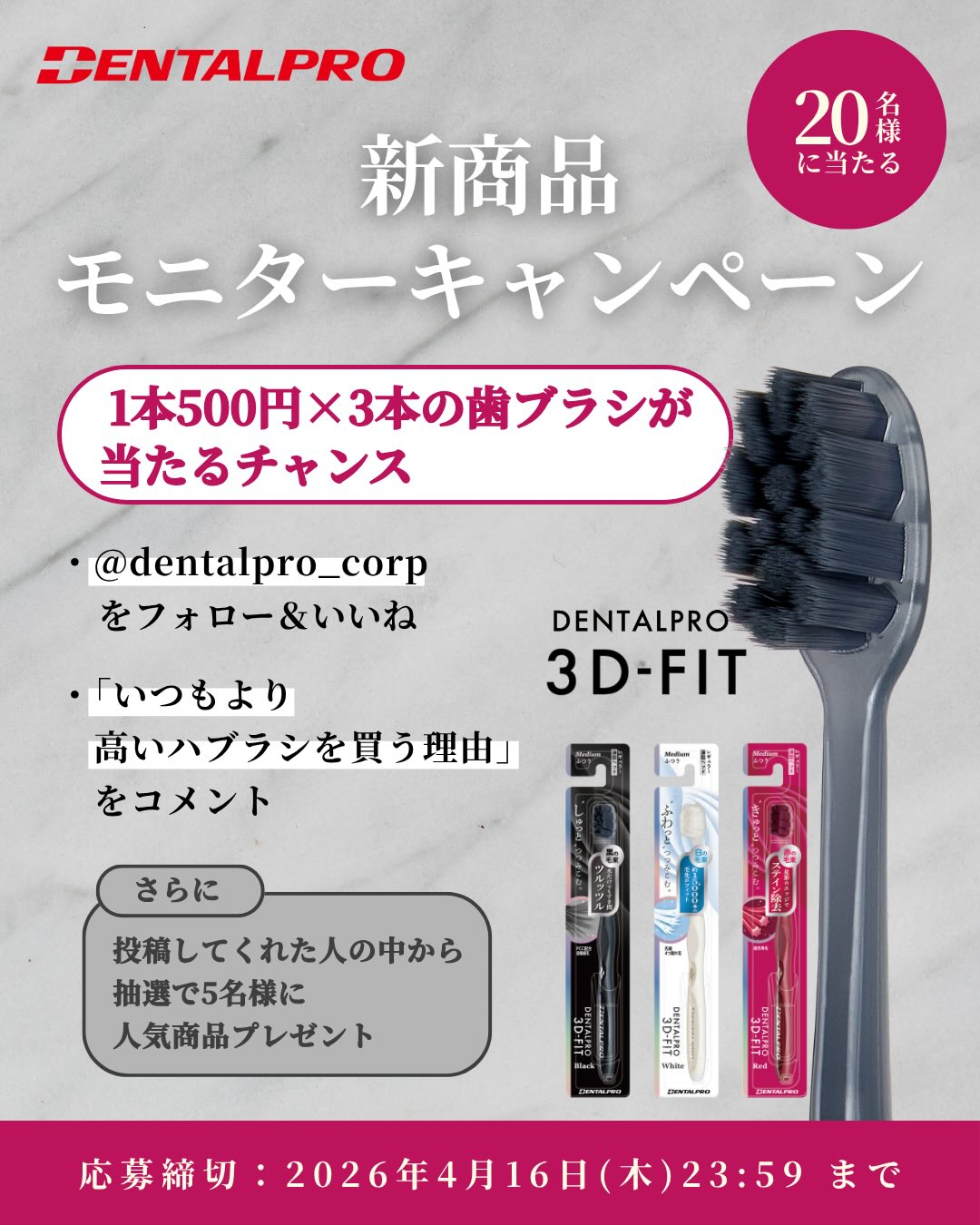 【Instagram懸賞】DENTALPRO 3D-FITを20名様にプレゼント