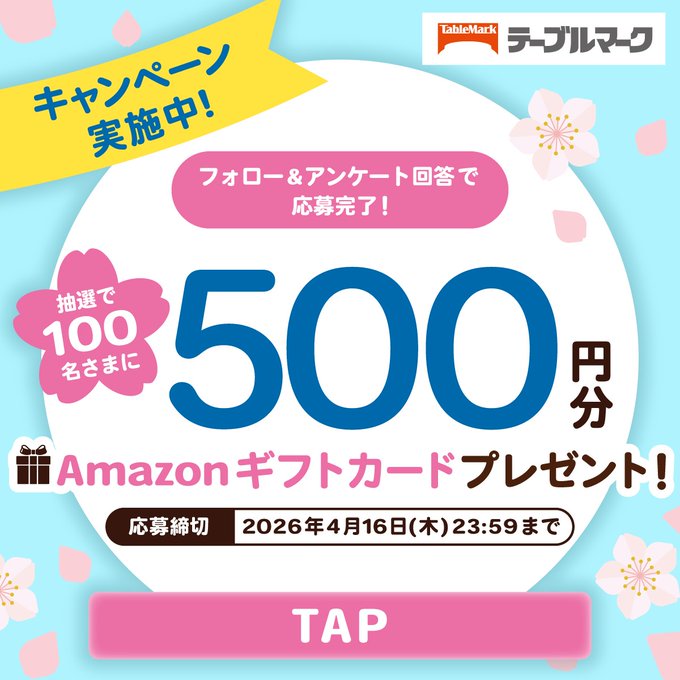 賞品:Amazonギフト券500円分(100名様)