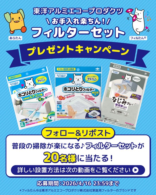 【X懸賞】東洋アルミのフィルターセットを20名様にプレゼント
