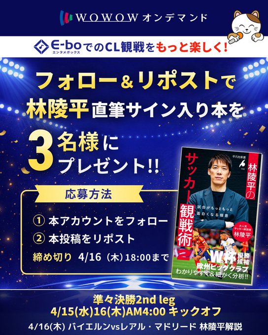 賞品:林陵平さんサイン入り著書『林陵平のサッカー観戦術2』(3名様)