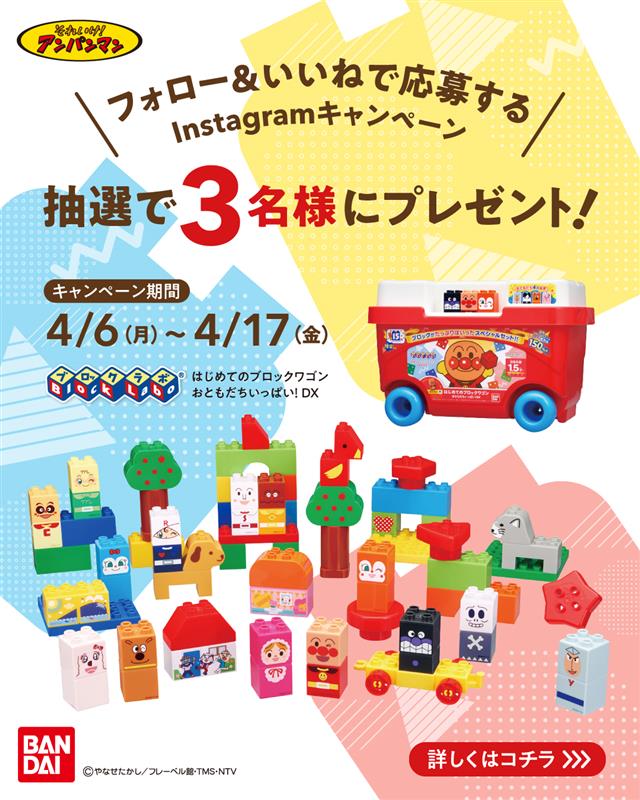 賞品:それいけ!アンパンマン はじめてのブロックワゴン おともだちいっぱい!DX(3名様)