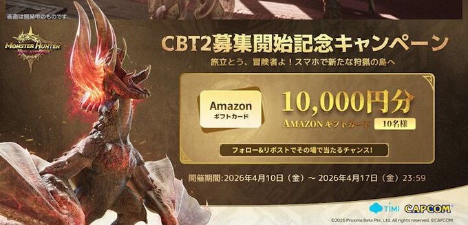 モンスターハンターアウトランダーズ公式Xアカウントをフォロー&キャンペーン対象ポストをリポストしてご応募ください。