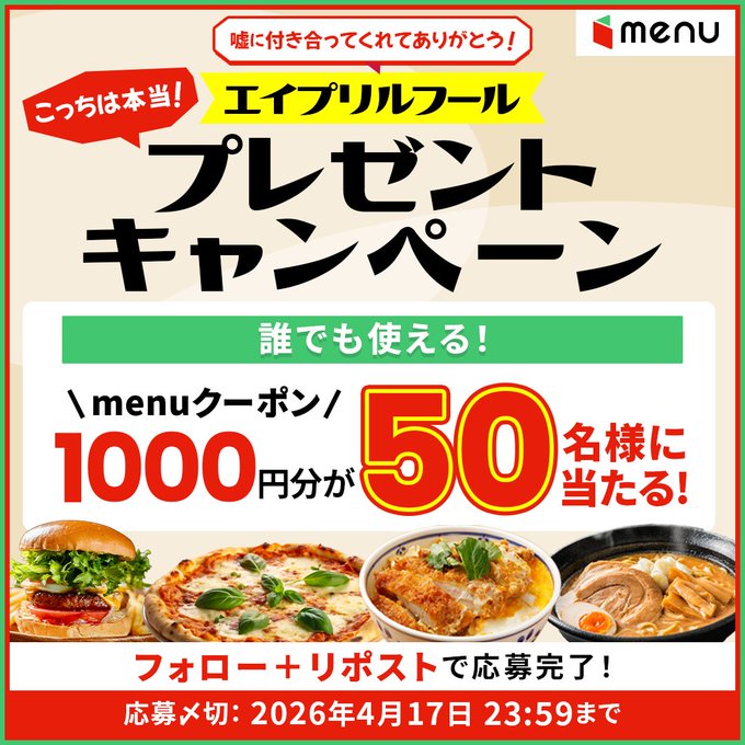 賞品:menuクーポン1000円分(50名様)