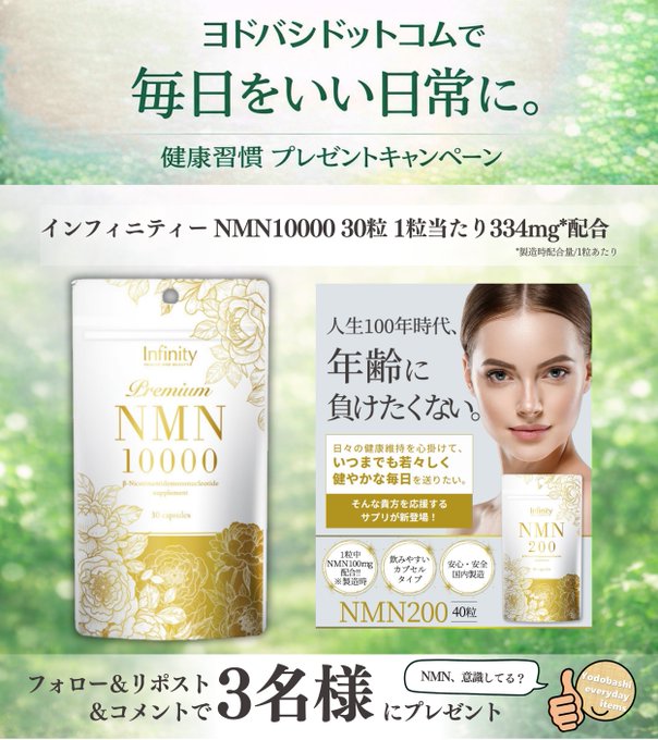 賞品:インフィニティー「NMN10000 30粒」(3名様)