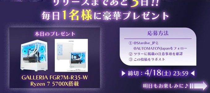 @Stardive_JPと@AUTOMATONJapanをフォロー&キャンペーン対象ポストをリポストしてご応募ください。