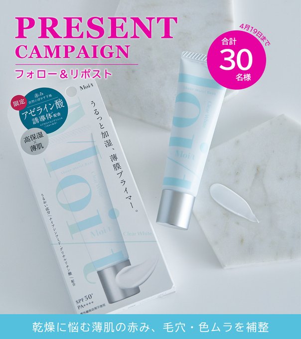 【X・Instagram懸賞】モイット シアーモイストベースAZを30名様にプレゼント 2026.04.16ELIZABETH(エリザべス)‐プレゼントキャンペーン 賞品:モイット シアーモイストベースAZ(30名様) 締切:2026年4月19日(日)公式Xアカウントをフォロー&キャンペーン対象ポストをリポストしてご応募ください。Instagramからも応募できます。※詳細はキャンペーンページにてご確認ください。応募はこちらから