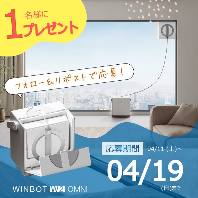 賞品:エコバックス 窓拭きロボット WINBOT W2(1名様)